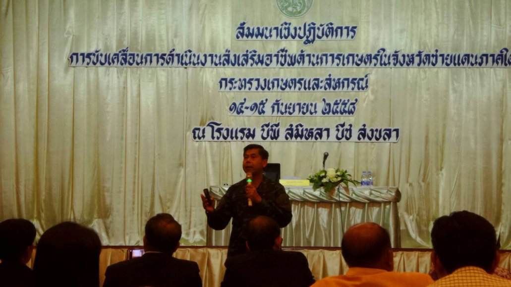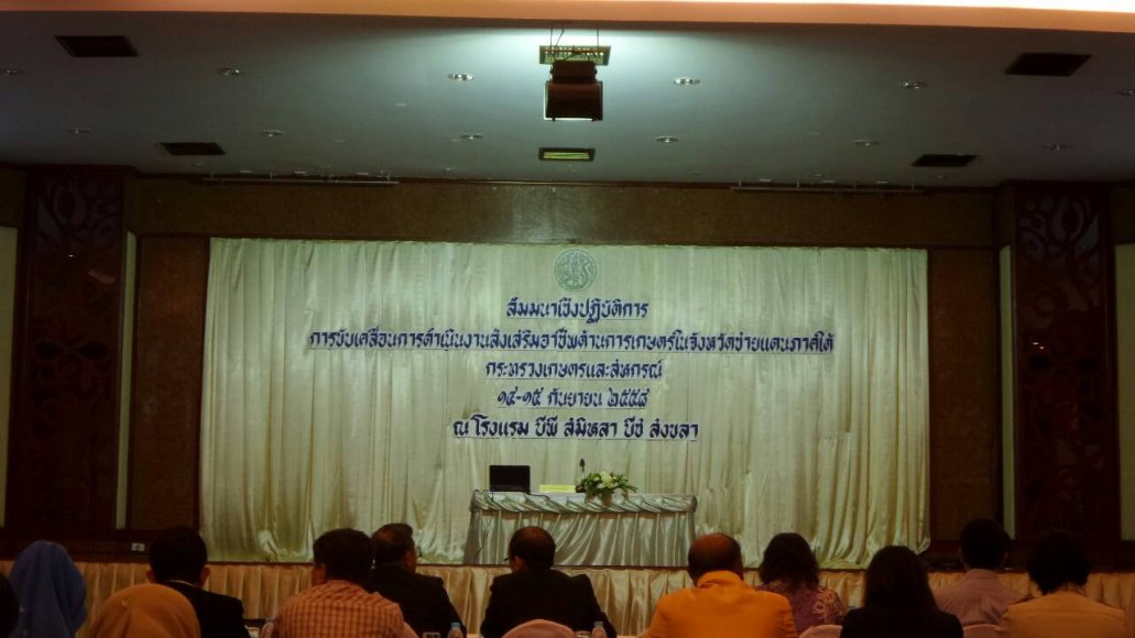 เมื่อวันที่ ๑๔ กันยายน ๒๕๕๘ นายแวอิบราเฮง แวดูแย นายช่างเทคนิคชำนาญงาน ได้เข้าร่วมประชุม เรื่อง การขับเคลื่อนการดำเนินงานส่งเสริมอาชีพด้านการเกษตรในจังหวัดชายแดนใต้ ของกระทรวงเกษตรและสหกรณ์ ระหว่างวันที่ ๑๔-๑๕ กันยายน ๒๕๕๘ ณ โรงแรมบีพี สมิหลา บีช รีสอร์ท จังหวัดสงขลา .